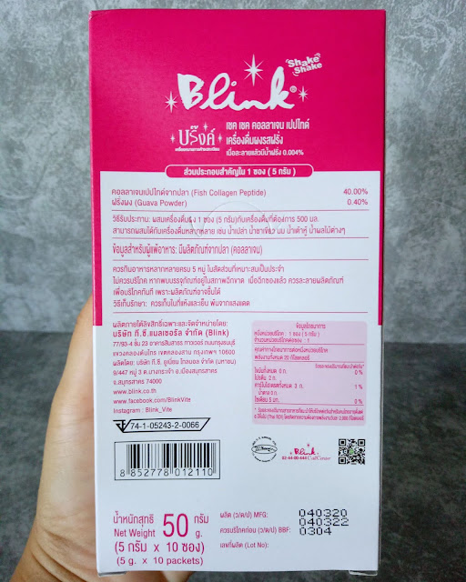 มาที่สหายตัวสุดท้าย Blink Shake Shake Collagen Peptide 2,000 mg. เครื่องดื่มผงรสสตรอเบอร์รี่ มีส่วนประกอบสำคัญคือ คอลลาเจนเปปไทด์จากปลา ผงสตรอเบอร์รี่ วิตามินซีและวิตามินอีสูงค่ะ มีส่วนช่วยในกระบวนการต้านอนุมูลอิสระ สร้างเนื้อเยื่อคอลลาเจนและเนื้อเยื่อของเอนกระดูก รวมถึงช่วยให้ผิวเรียบเนียน และนุ่มลื่นขึ้นอีกด้วยค่ะ